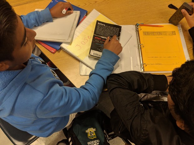 To start, I asked students to partner up and choose from a display of books that had either been challenged or banned in the last year. But before I released students to select their titles, we discussed the difference between these two terms together as a class. Once students realized the books on the back table were there because someone thought they were inappropriate for them to read, they were practically jumping out of their seats to make their selections.