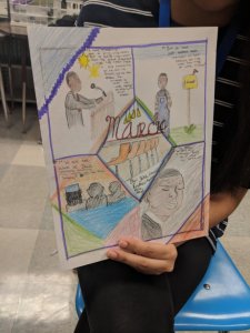 To prepare students for this evaluation, we spent some time together in class generating a list of common characteristics for coming of age stories. Through group and whole-class discussion, students realized many insightful commonalities – their books dealt with overcoming hardships, experiencing change, growing up, learning important life lessons, making tough decisions, etc. With this scaffold and a few guidelines in place, students were given time to create a one page visual that depicted one of these characteristics in their novel(s). All of this occurred during the first week of class when in past years I had given students time to individually prepare for the reading test by either completing a review or doing their reading. This year that silent and solitary time was replaced by discussion, learning, creating, and community building.