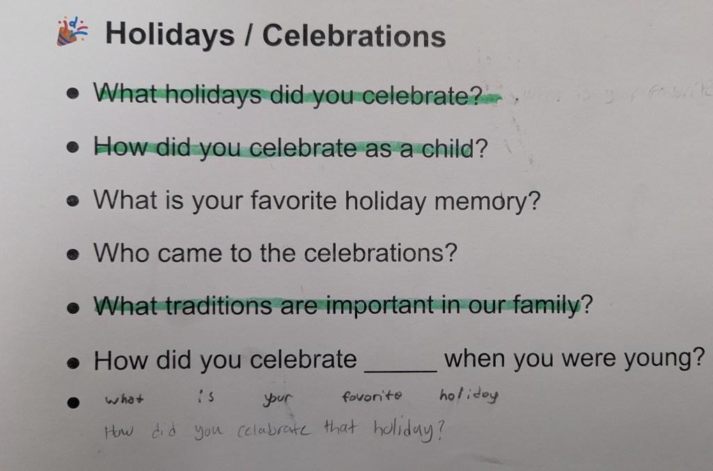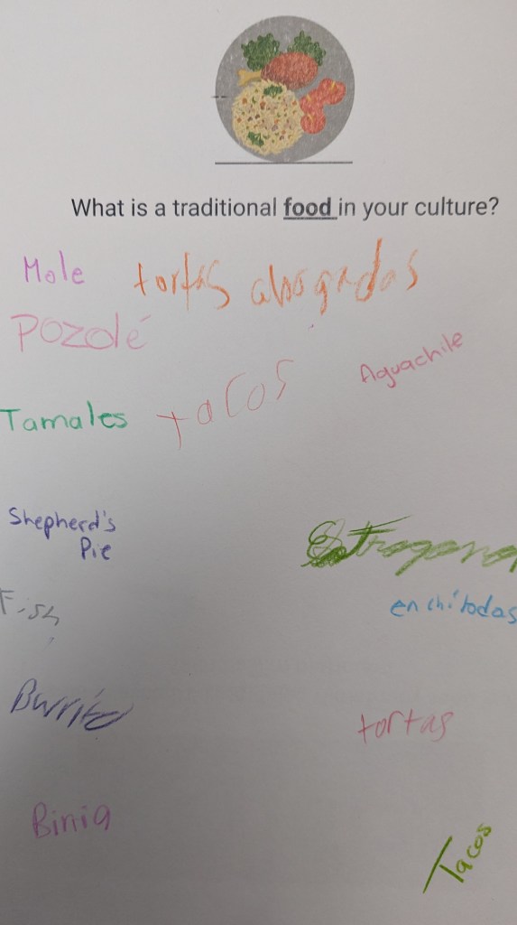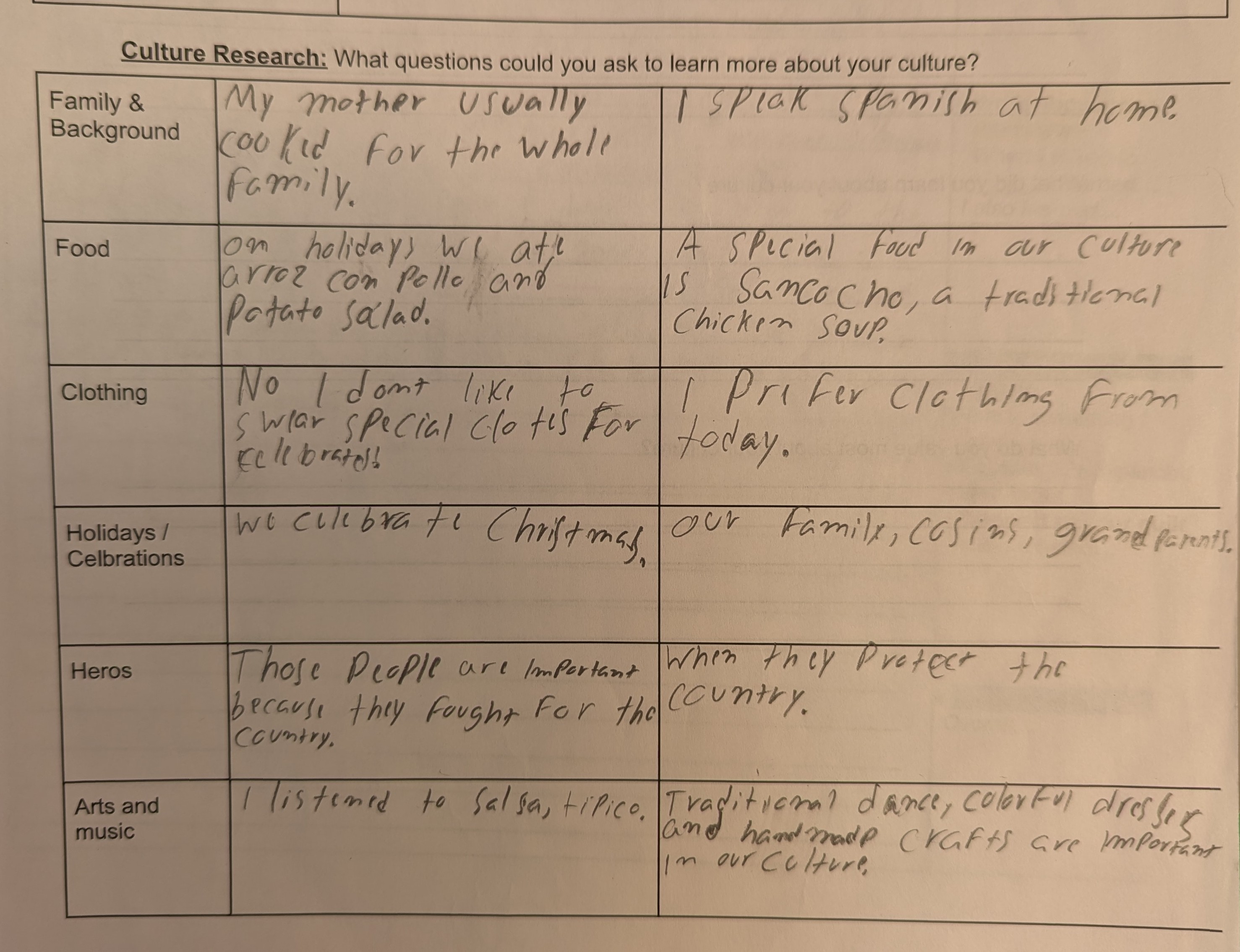More than anything, this project reminded me of the power of conversation. Students learned they have a lot to say by getting the opportunity to speak. The gallery walk and talk brainstorm invited students to build on collaborative knowledge. The interviews students conducted with family members didn’t just give them content to write about—they created space for connection, storytelling, and the passing down of culture. The celebratory sharing invited students to show off their hard work while also learning more about each other. These conversations became the heart of the writing, making it more meaningful, more personal, and far more than just an assignment.