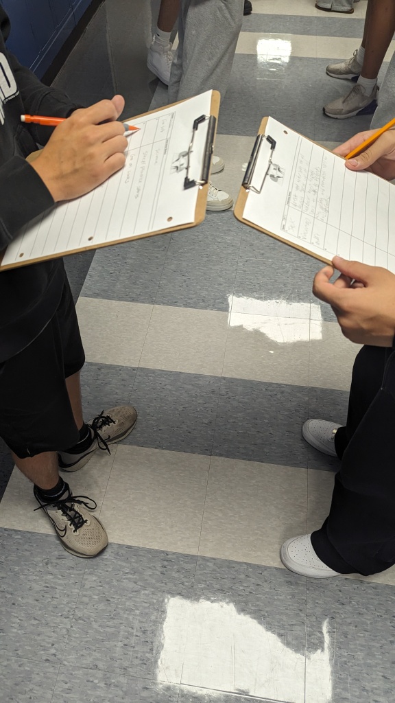 Students line up facing each other, and with a 90-second timer running, they talk. The clipboard gives them something to look at, and the questions give them something to focus on. While these elements make the conversations feel low-stakes, they often lead to high-reward connections.
